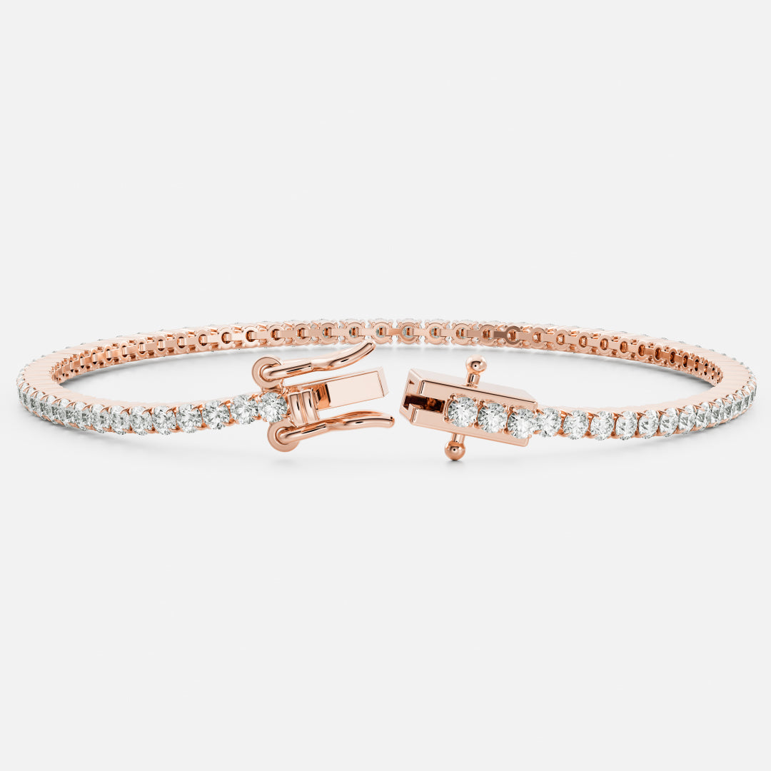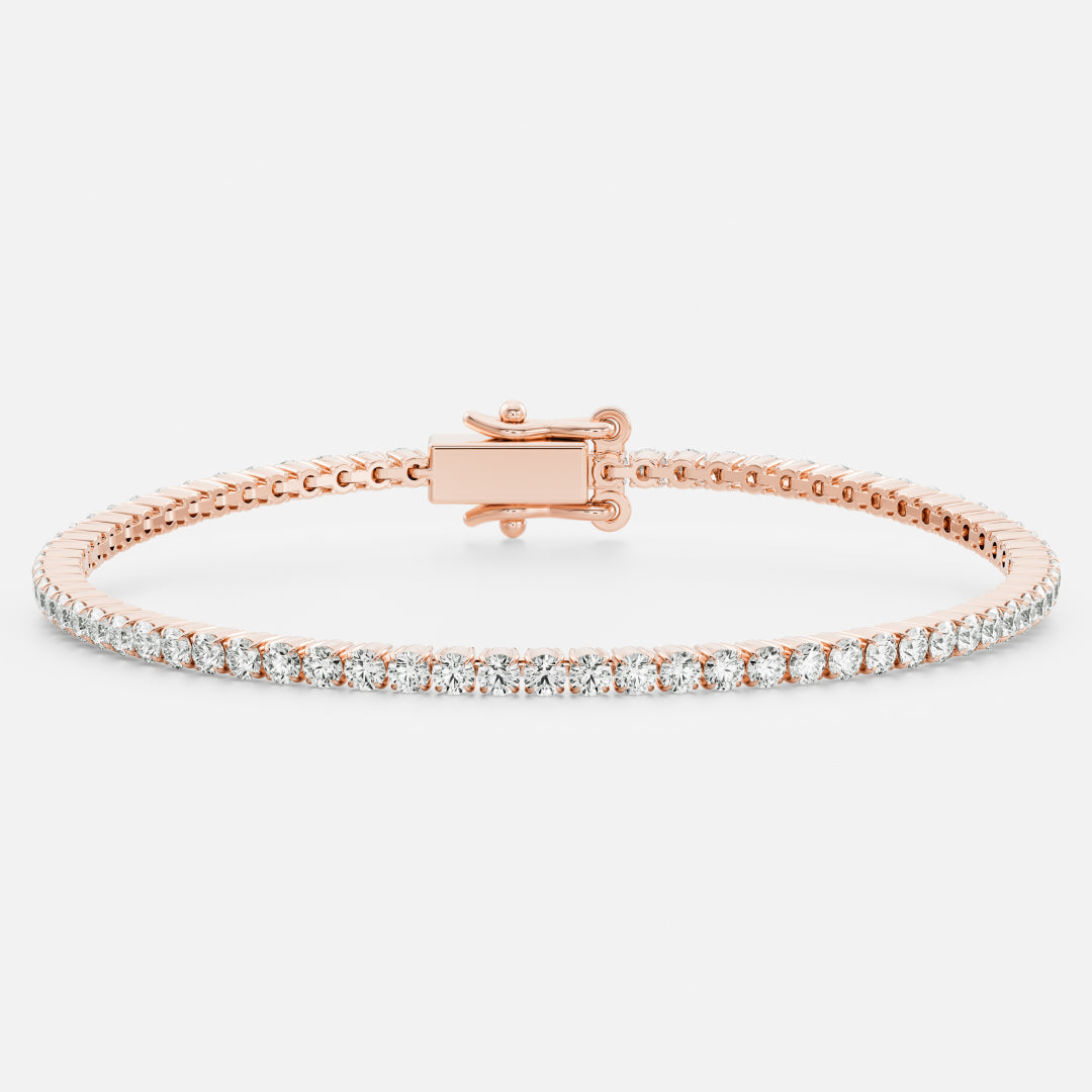 A contemporary style tennis bracelet crafted from your choice of precious metals and adorned with prong set round brilliant lab-grown diamonds. A beautiful piece worn alone, or layered.