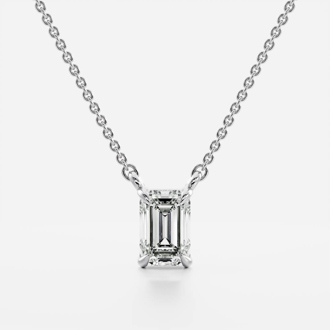 Adorn yourself with The Iris Pendant and seamlessly merge classic style with modern trends. This piece features an emerald cut cultured gemstone, crafted in a refined prong setting. Available in two carat options, pictured is our 0.5ct.