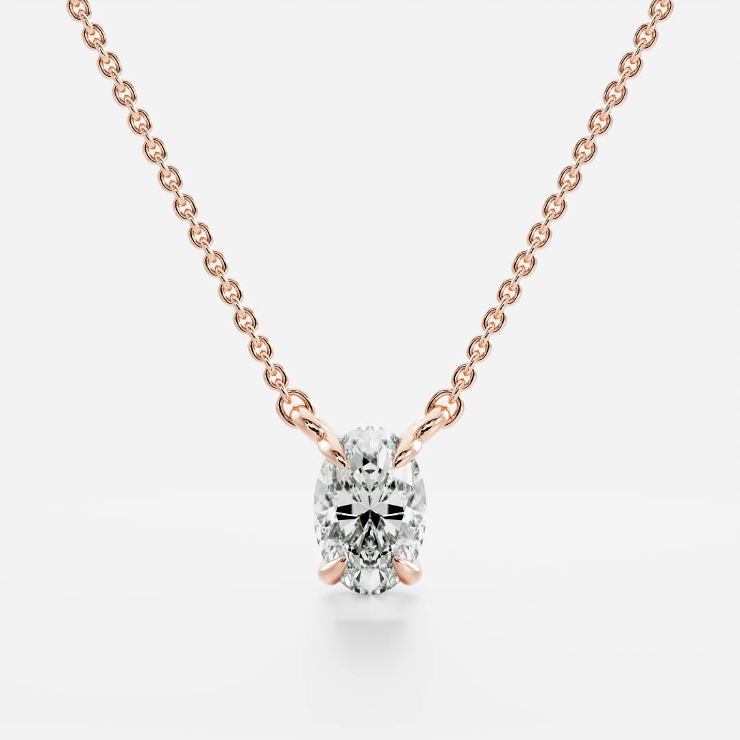 Adorn yourself with The Iris Pendant and seamlessly merge classic style with modern trends. This elegant piece features an oval cut cultured gemstone, intricately crafted in a refined prong setting, available in two sizes. Pictured is our 0.3ct.
