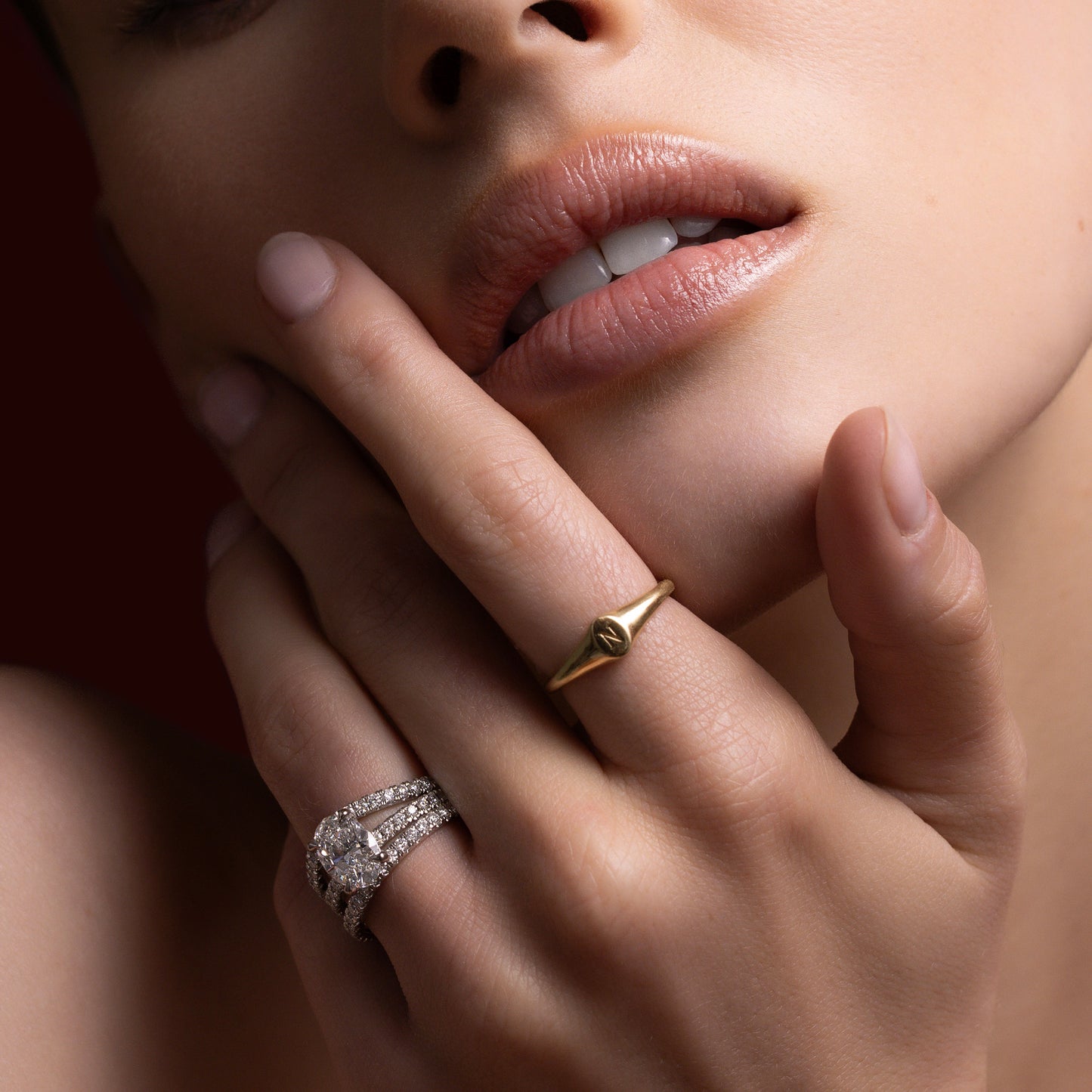 Bold pieces for bold moments. Thoughtful and timeless, celebrate your unique story with our Signature Petite Oval Signet Ring. Deepen the sentiment by adding an initial, compass or an inlaid cultured gemstone to your bespoke design.