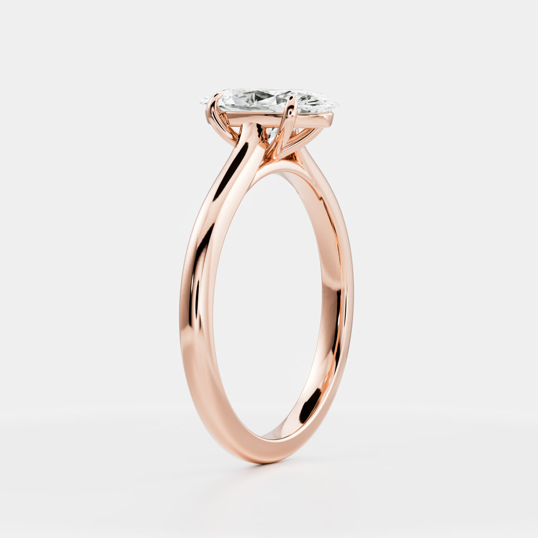 The Cara Ring features a striking elongated silhouette, with a moval lab-grown gemstone in our Signature Cathedral Setting. A classic solitaire, reimagined with a contemporary gemstone shape.