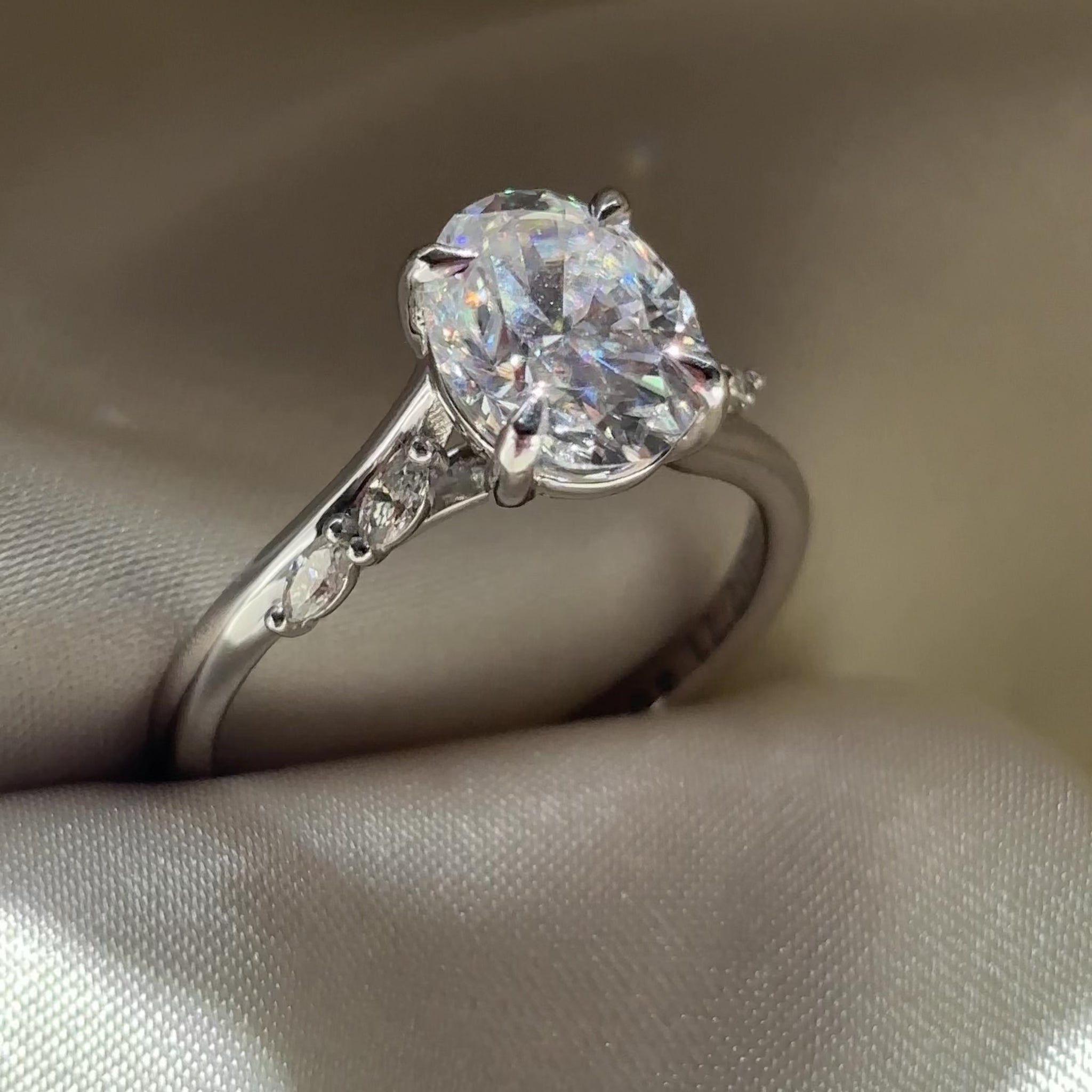 The Amira Ring™ - 2.1ct Moissanite Oval with Marquise Accents